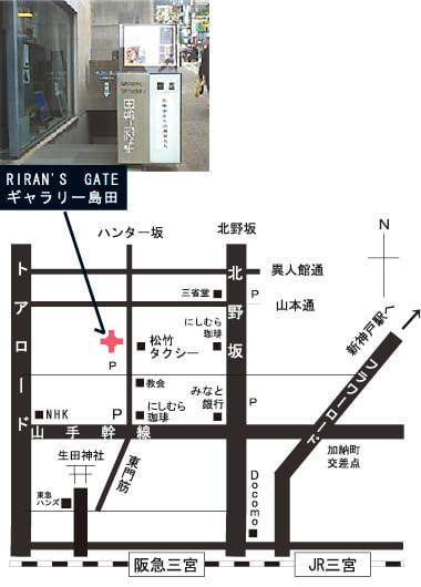 ハンター坂を5分ほど上がると右手に松竹タクシーの事務所があり、その真向かいの通り左手に安藤忠雄建築のコンクリートの建物があります。